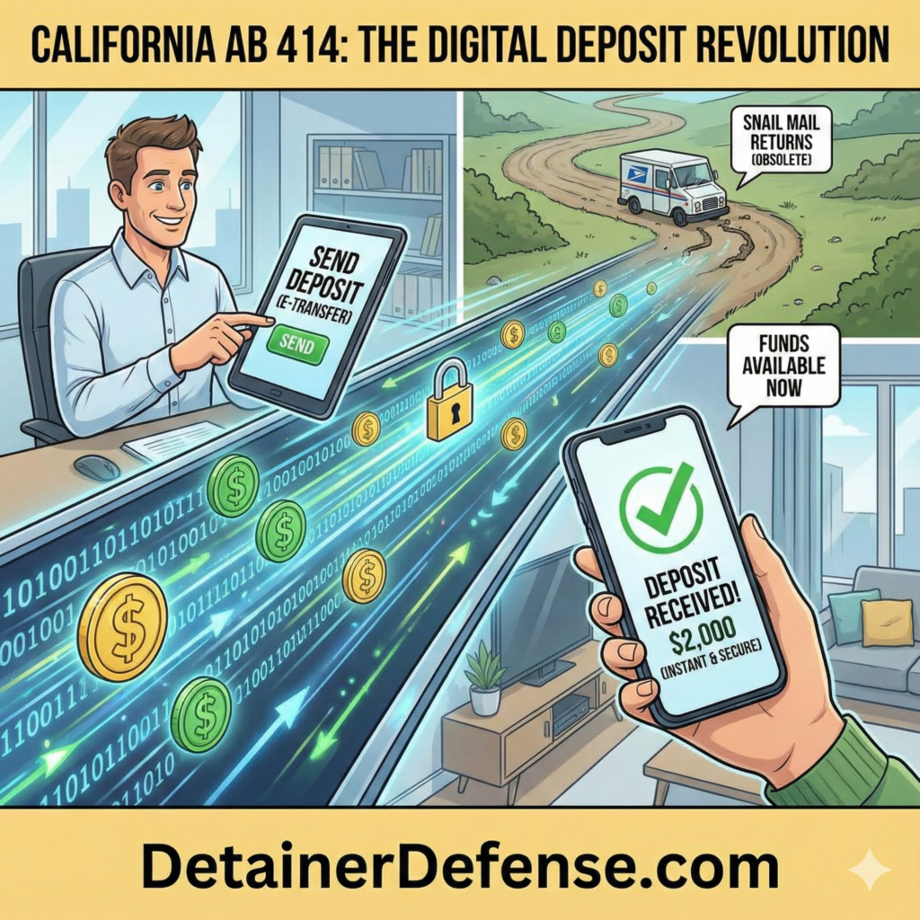 California Assembly Bill 414 (AB 414), signed into law in 2025 and effective January 1, 2026, modernizes the process for returning residential security deposits by requiring landlords to issue refunds electronically if they accept any rental or security payments electronically. Under this law, which amends Civil Code Section 1950.5, landlords must notify tenants in writing of their right to receive their security deposit electronically. They must default to this method unless the landlord and tenant designate another method of return via a written agreement. Additionally, the bill streamlines administrative procedures by allowing parties to agree at any time during the tenancy—rather than only after a move-out notice—on how the itemized statement of deductions and the remaining deposit will be delivered. For tenancies involving multiple adult residents, the law mandates that the refund be issued as a single payment made payable to all tenants on the lease, unless all such tenants provide written consent to a different arrangement.
